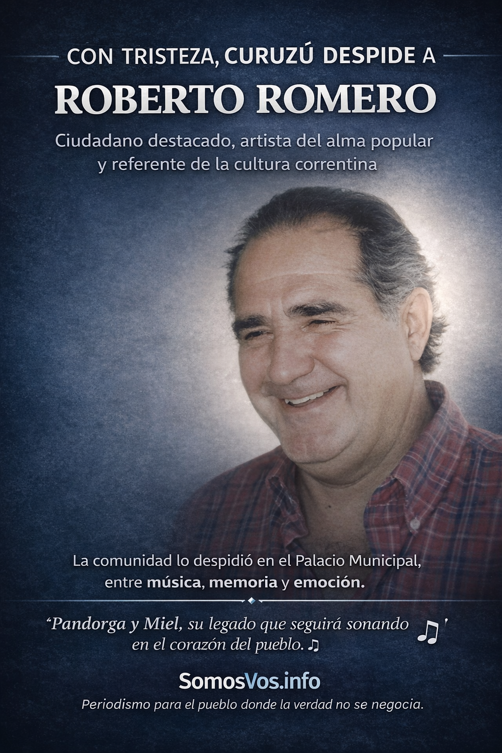 La ciudad pierde a un artista, pero su obra, su voz y su sensibilidad quedan como parte viva de la identidad cultural de Curuzú Cuatiá. Su legado seguirá sonando en cada rincón donde la música, la comparsa y la memoria colectiva sigan celebrando lo que él supo expresar con el corazón.